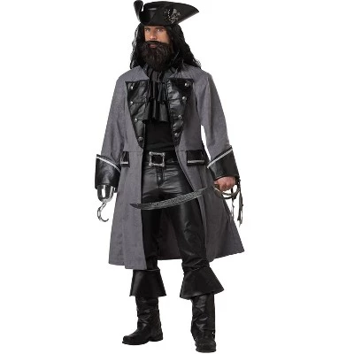 - Coat; Hat; Jabot; Belt; Pants, sword, hook, wig, beard, and boot covers not included