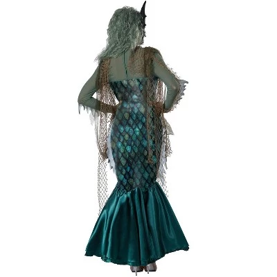 Old sailor legends say that the beautiful sea siren uses her beautiful singing voice to lure sailors to their deaths. You can transform into a terrifyingly beautiful sea creature with the help of this amazing costume. This costume puts a dark twist on the classic mermaid costume. Add a flowing wig and green makeup to make your transformation complete!
