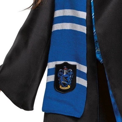 Channel your house and complete your Harry Potter look with this blue and bronze Ravenclaw Scarf. This is the perfect addition to any of our Harry Potter costumes. The scarf features strips and the signature Ravenclaw crest. Its warm and cozy and great for Halloween and to wear all winter long!