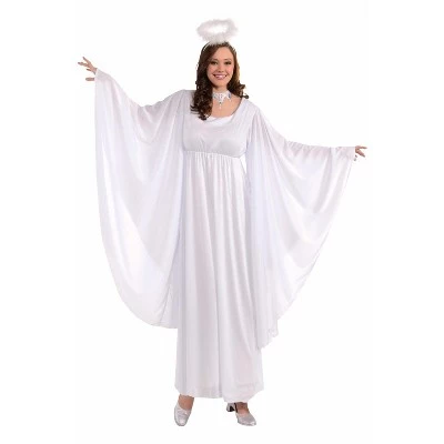 Everyone’s going to be struck with wonder when they see you in this heavenly costume. This gorgeous angel costume features a long white gown with flowing extra large bell sleeves that emulate angel wings. No one will be able to deny your beauty and grace when they see this awe-inspiring costume.