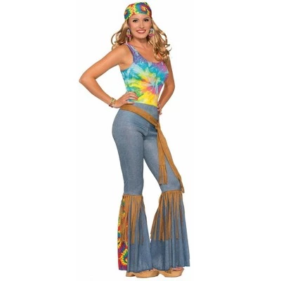 Whether it’s Woodstock or Halloween, The Hippie Pants with Belt set will get you in character for your next 60s themed event. Includes a pair of bell bottom pants with tye dye designs and fake leather fringe, along with a matching fake leather belt. Comes in a variety of sizes and ships fast when you order on our online store!
