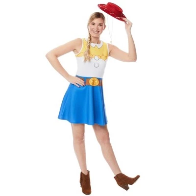 Hit the square dance in style with the help of the Women’s Toy Story Jessie Costume. If you’re interested in joining the other toys from the famous Pixar movies, or you just want a rootin’, tootin’ outfit for a night of fun with your friends, this simple dress is sure to please. It’s made to look just like the character that first joined the gang in Toy Story 2, with a blue skirt and a white top, bursting with character details.